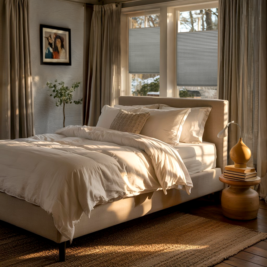 Charakterystyczna struktura tkaniny sprawia, że roleta prezentuje się wyjątkowo estetycznie i pasuje zarówno do wnętrz nowoczesnych, jak i klasycznych czy skandynawskich.